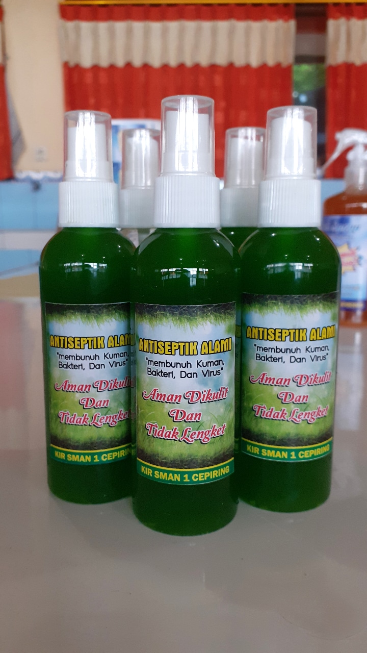 Antiseptik ini dikemas dengan botol spray berukuran 100 mL , warnanya hijau yang berasal dari sari bunga bidens dan daun salam. Aromanya segar. Dijual dengan harga Rp 12.500/botol. Antiseptik ini efektif membunuh kuman, bakteri dan virus. Cocok digunakan ketika musim pandemic ini. Antiseptik ini berasal dari bahan alami.